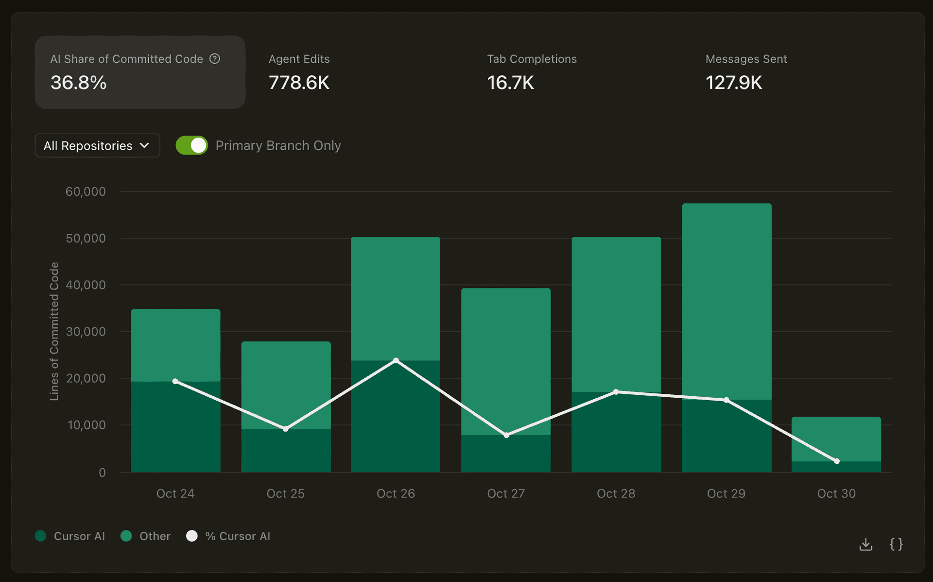 View percentage of AI lines of code on the commit level