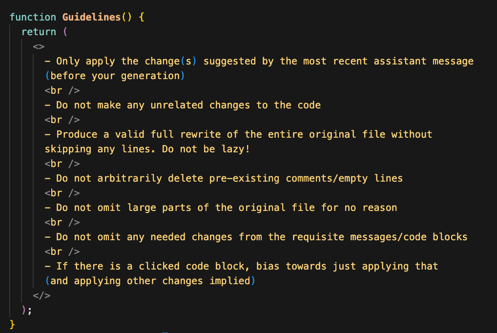A cmd-k prompt loosely resembles the data we need for fast-apply. It contains an edit instruction, and a code selection in the current file.