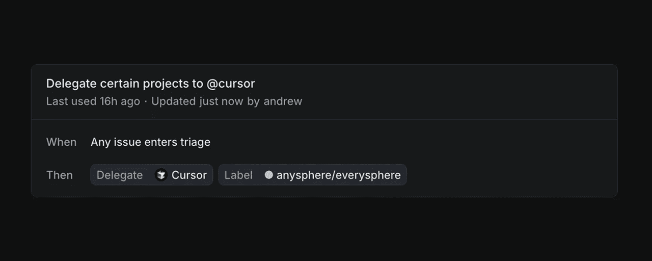 Automatic triaging rules: Create triaging rules that automatically assign certain tasks to the Cursor Agent, helping you respond immediately to user feedback.