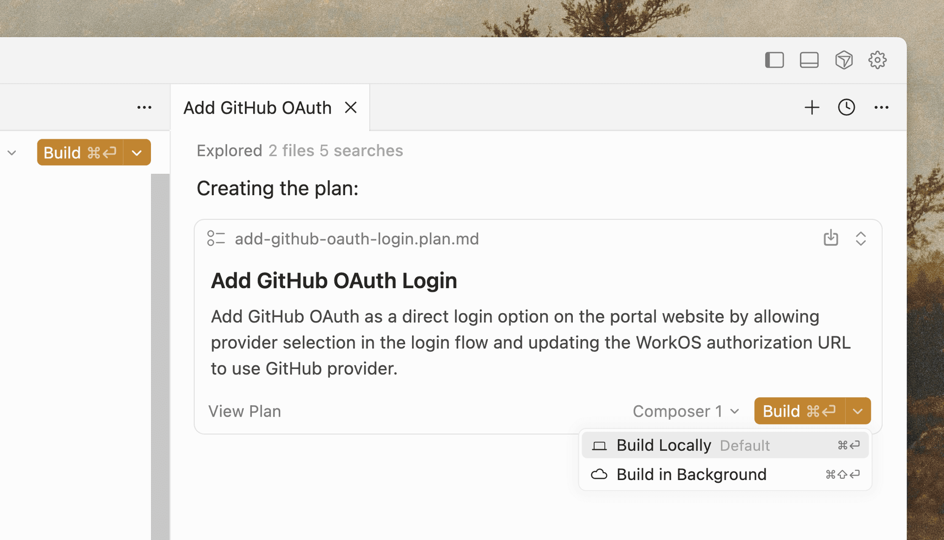 Create your plan with one model and build the plan with another. You can choose to build the plan in the foreground or background, or even plan with parallel agents to have multiple plans to review.